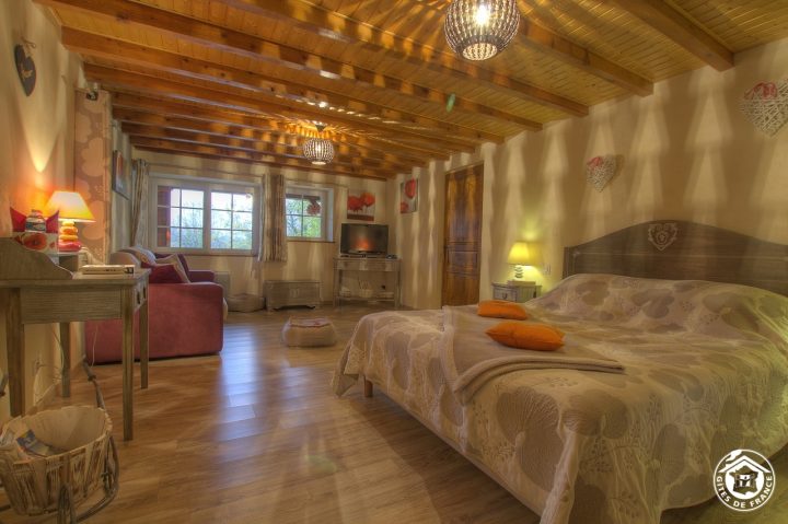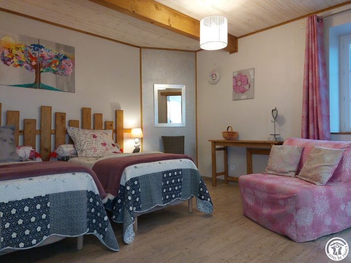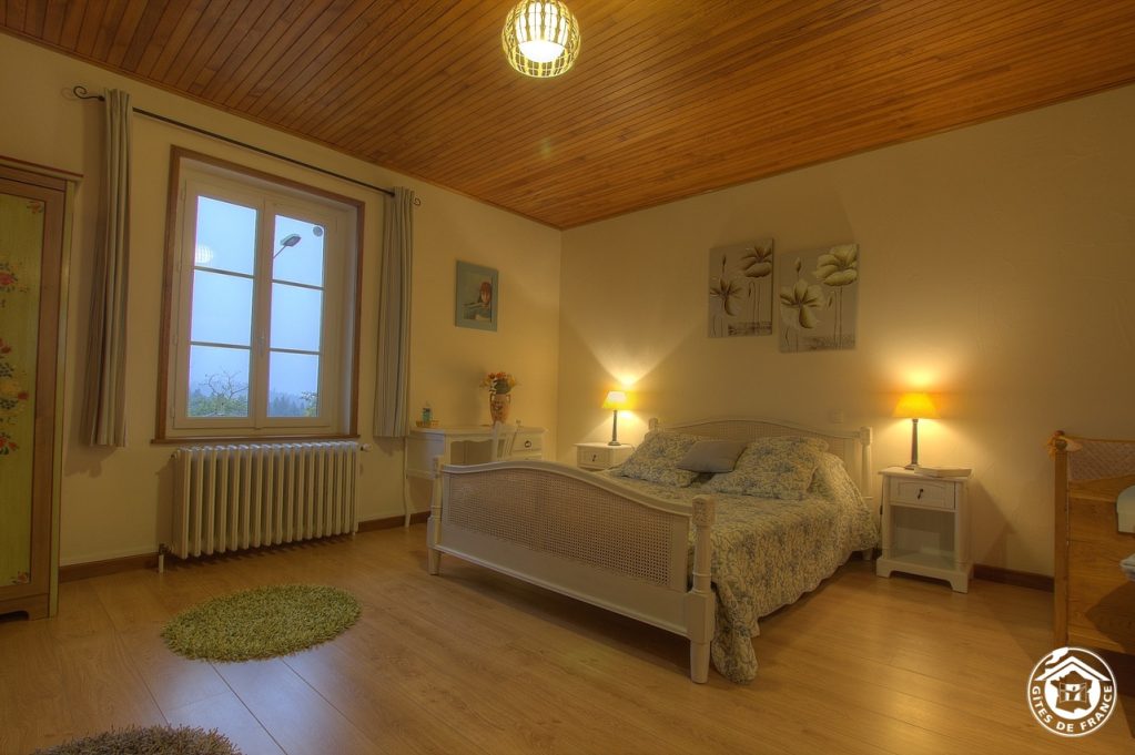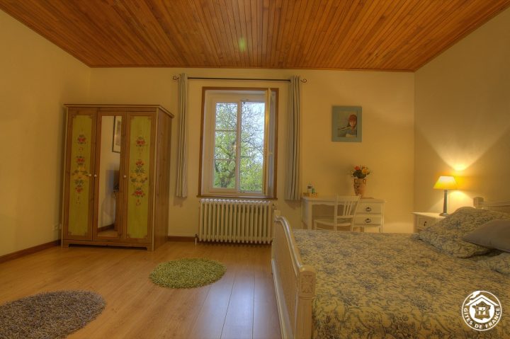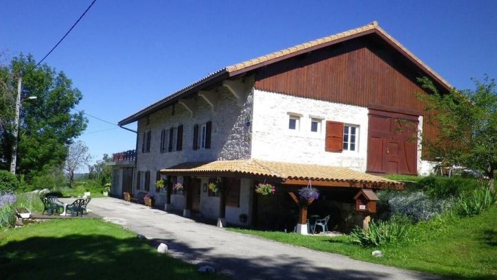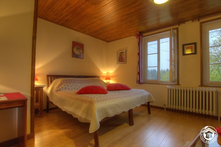 At 750 m altitude, close to the Plateau du Retord, Patricia opens her 5 bedrooms in a quiet, tastefully renovated 19th-century farmhouse. On the first floor, the Romantique room sleeps 4 (1 bed 160x200 and sofa bed 140x190), with private shower room and WC. On the second floor, there are 4 bedrooms: Fidji (2 beds 190x190), Louison (1 bed 160x190 and 1 crib, with the option of a folding bed), Douceur (2 beds 90x200) and Chaleur (1 bed 160x200). Each room has a private, separate shower room and WC. On the ground floor, a kitchen is available to guests. Parking and 3 hectares of grounds. A restful stopover to discover the Plateau du Retord route, an ideal place for hiking, mountain biking, cross-country and downhill skiing and other nature activities. Balneotherapy center 20 km away. Donkey rides at Brénod. Paragliding, accrobranche.