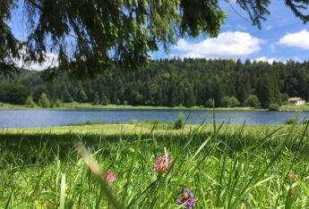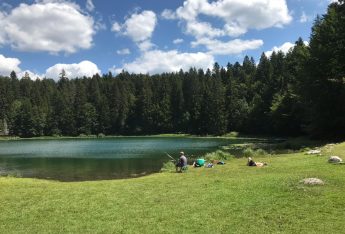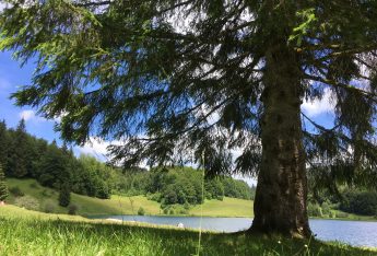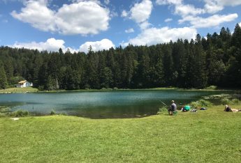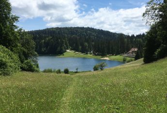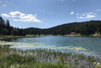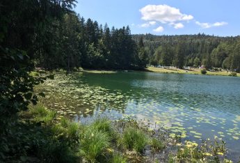 Le petit lac de montagne situé dans une clairière entourée de sapins à 830 mètres d’altitude est surnommé “le Petit Canada du Haut-Bugey”. Destination familiale pour les loisirs d’été, on y pratique le patinage sur glace et la plongée sous glace en hiver.