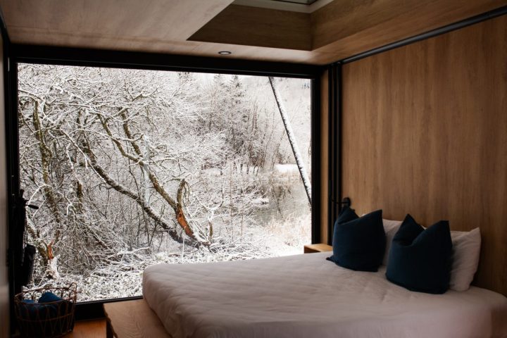 Bleu Minuit's new domain in the Ain region features new accommodations on the water, whose architecture is a nod to pleasure boats. Set on the banks of the Grand Etang du Genevray, these new lodges welcome their passengers for a sensory voyage to other horizons...