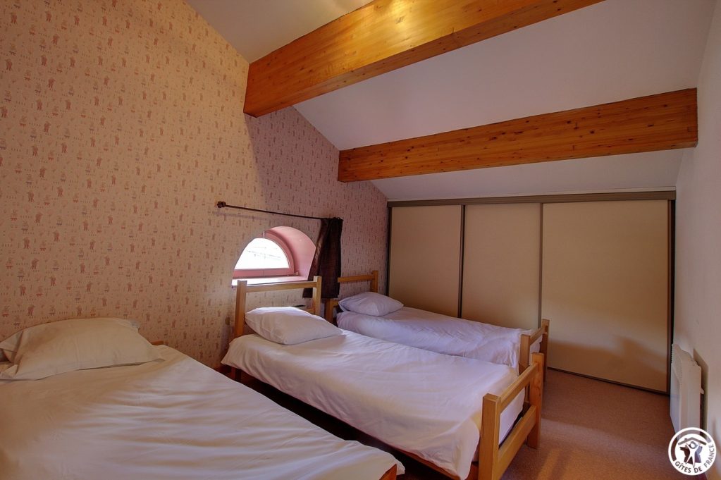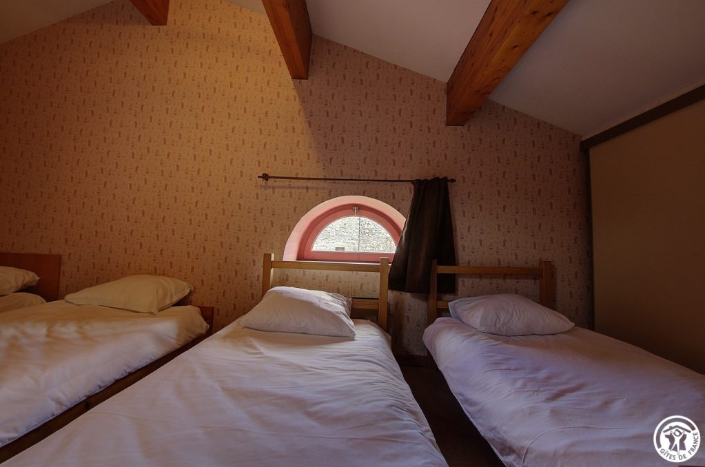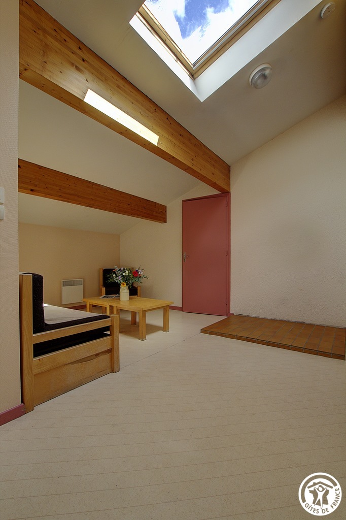 Gîte (45 sq.m.) on 2nd floor of self-contained building comprising 2 other rural gîtes et 1 group gîte at centre of village. Living room/kitchen area, 2 bedrooms (beds: 1 double, 4 single), bathroom. Electric heating. Card operated telephone. Lake, fishing, nature trail, sign-posted tracks (mountain-biking, hiking, horse-riding). Local history et heritage. Restaurant in village. Phone box nearby. Only Bouygues mobile phone network available.