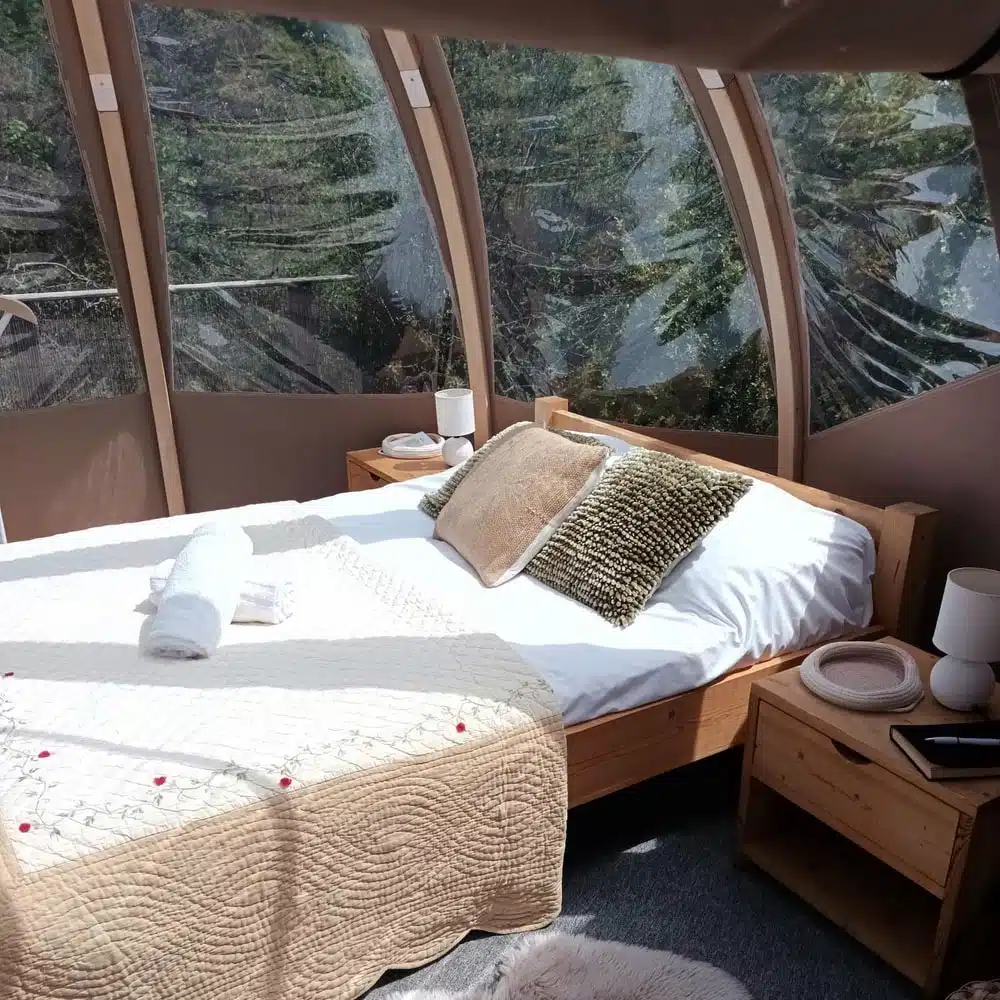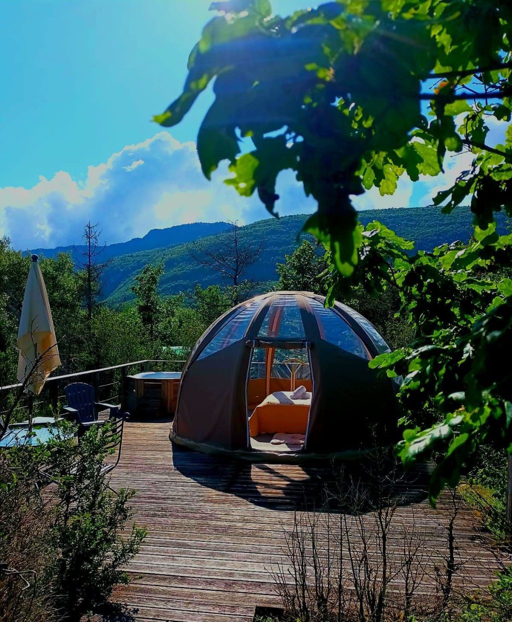Our wooden-framed bubble offers you the sensation of a night in the open air. You will discover the joys of one or more nights in the heart of nature with all the necessary comforts. With private bathrooms, a jacuzzi and breakfast included, our bubble, designed by Jean Lehmann, offers you privacy in the heart of the great outdoors.